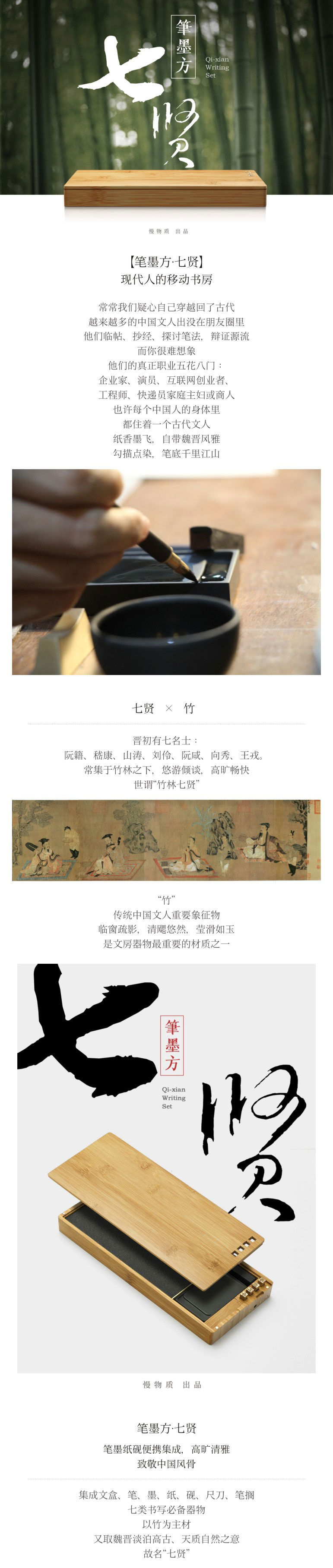 慢物质 笔墨方竹子文盒《七贤》 非定制版(无铜字)